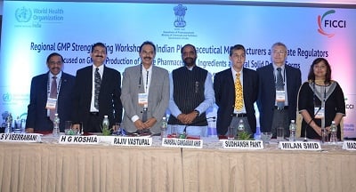 The WHO Country Office for India in collaboration with the Department of Pharmaceuticals, Government of India and Federation of Indian Chambers of Commerce and Industry (FICCI) recently organized the ‘Regional Good Manufacturing Practices Strengthening Workshop’, for Indian pharmaceutical manufacturers and state regulators. Workshops were conducted in Ahmedabad, Bangalore and Goa. The workshops focused on Good Manufacturing Practices (GMP) in production of Active Pharmaceutical Ingredients and Oral Solid Dosage Forms.