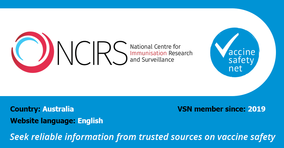 The website of the National Centre for Immunisation Research and Surveillance is a member of the WHO-led project Vaccine Safety Net (VSN).